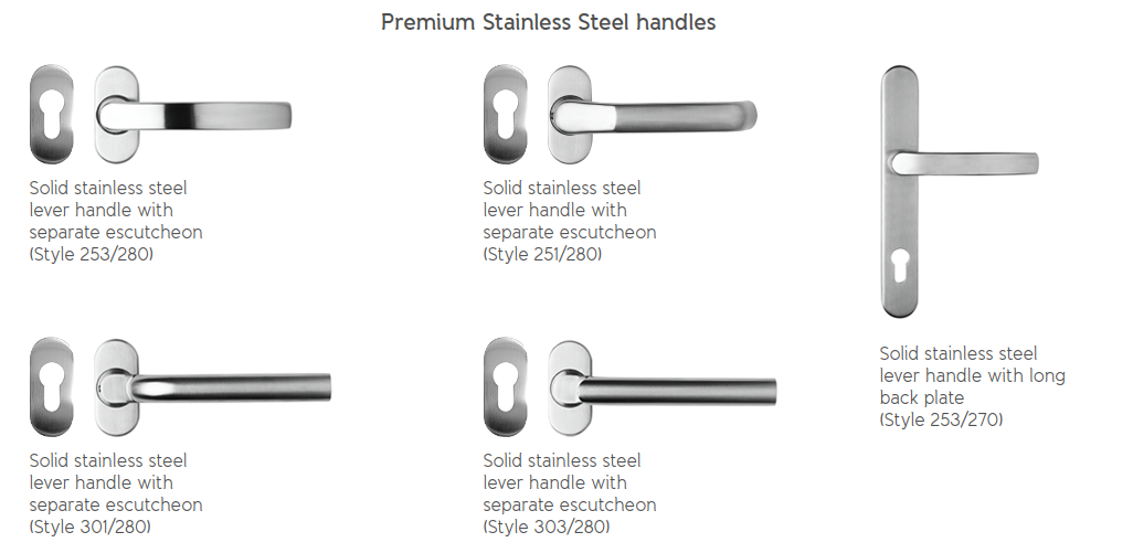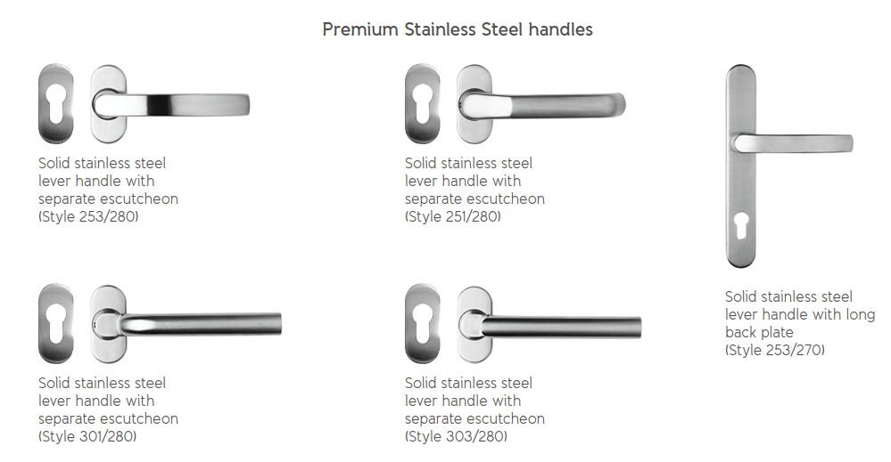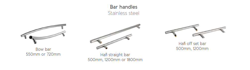 Choose from a range of premium handles to suit every sightline, including the Stainless Steel Bar Handle (500mm), All-in-One Handle (300mm), and Patio D-Handle – all designed for broad compatibility and a sleek finish.