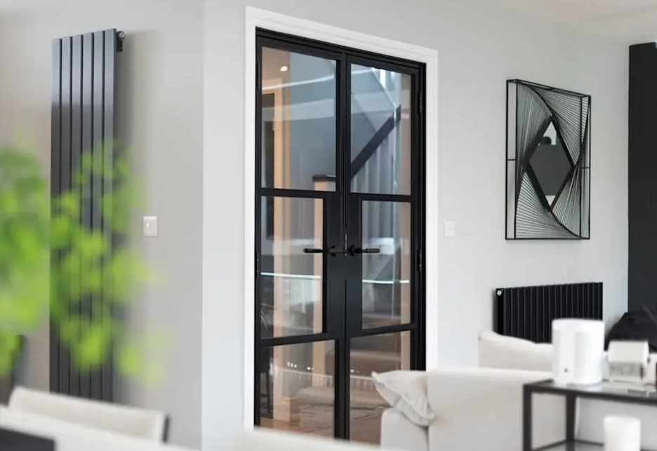 Bespoke aluminium internal French doors for a stunning steel-look aesthetic