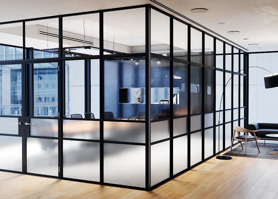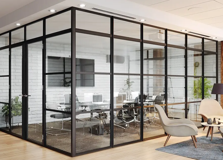 Creating a separate room without compromising light, the Origin OI-30 Corner Configuration provides a sleek, classic aesthetic for your living area or commercial space.